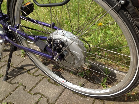 Meine Wahl viel damals auf das BionX-System, da sich die Systemparameter über eine Software sehr umfangreich auf den Fahrer und Fahrgewohnheiten einstellen ließen. Außerdem war ist mit diesem Antriebskonzept bereits Rekuperation möglich. Eine Schwäche aller Nabenantriebe ist das geringe Drehmoment bei langsamer Fahrt, also am Berg, also da, wo man die elektrische Unterstützung am dringendsten benötigt. Der Motor dreht so schnell wie das Rad selbst. Das ist selbst für einen Elektromotor manchmal zu wenig.