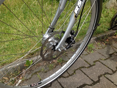 Die Scheibenbremsen an Vorder- und Hinterrad werden über die vorhandenen Bowdenzüge bedient.